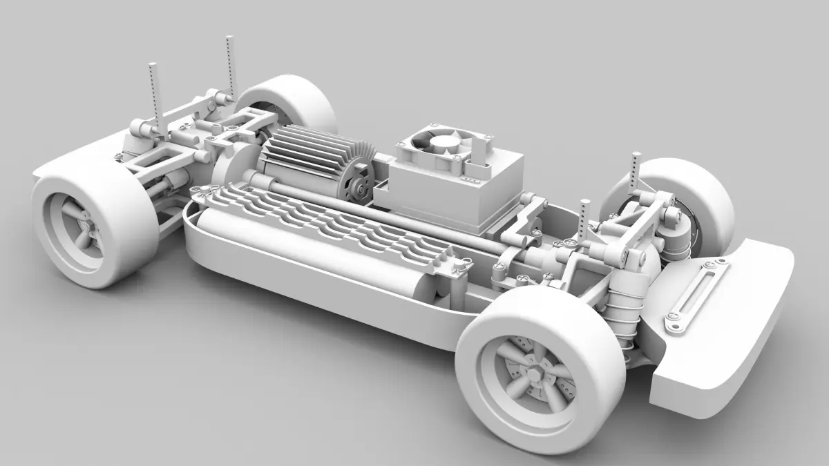 This is a 3D model of the Tamiya TT-01 RC Car. The scale is 1:10 and is highly detailed with all parts and special modifications such as a cooling fan on top of the CPR unit. This allows you to use a more powerful engine without risking to overheat, because the battery provides the power over the receiver to the engine and not directly. I modelled all parts myself!