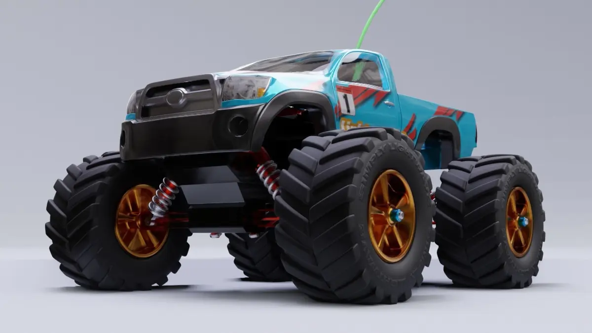Rc car truck model in Blender 2.81 rendered in Eevee. Models are lightweight with subdivision surface modifier and polymesh.