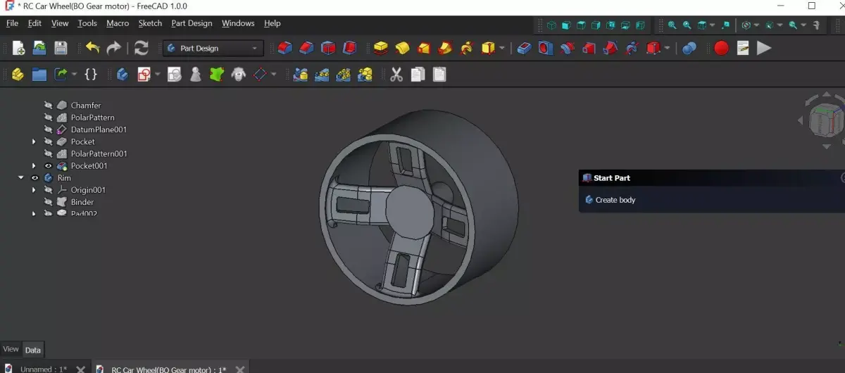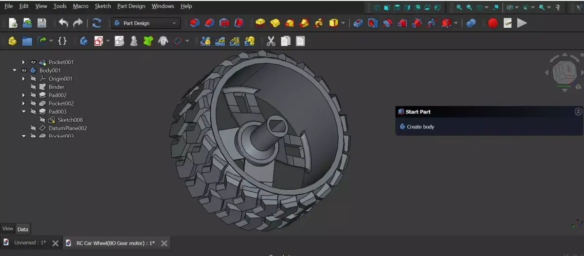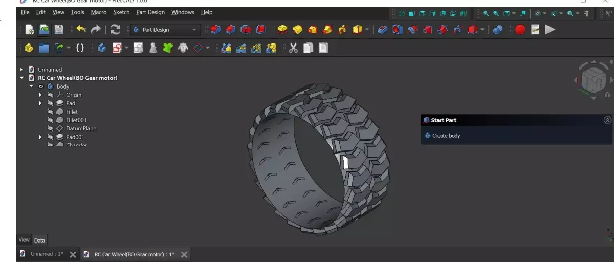 This is a complete RC wheel assembly including a BO Gear Motor model, designed and assembled in FreeCAD.The model is ideal for RC car design, robotics projects, product visualization, animation, and 3D printing reference.
