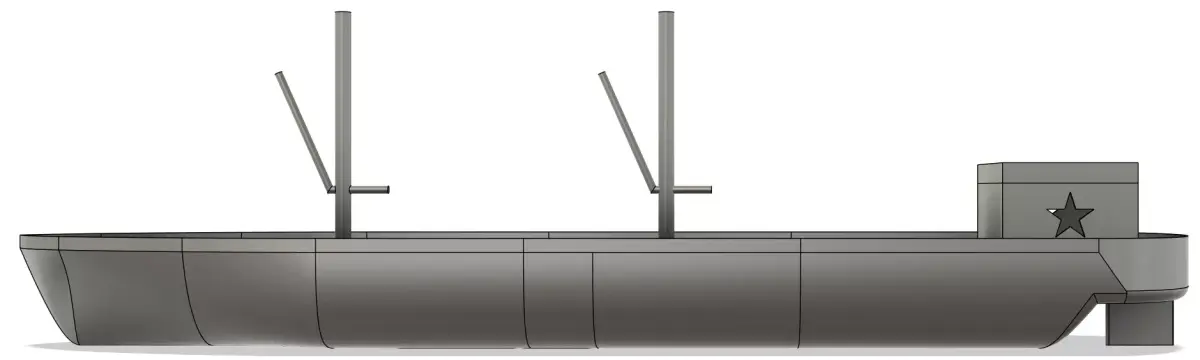 This model is a simple design I created for my RC boat club’s annual Christmas light parade. I wanted something with a lot of deck area for decorations and lights, and was also simple to construct. It's based loosely on coastal freighters, but is not to any scale as it wasn't made from drawings. I made it specifically for my printer, so you will need a large print bed (longest hull part is 300mm long.) I do not intend on redesigning this print for a smaller printer, but still wanted to post the files for any interested in building their own. No resin printing was used for this build.