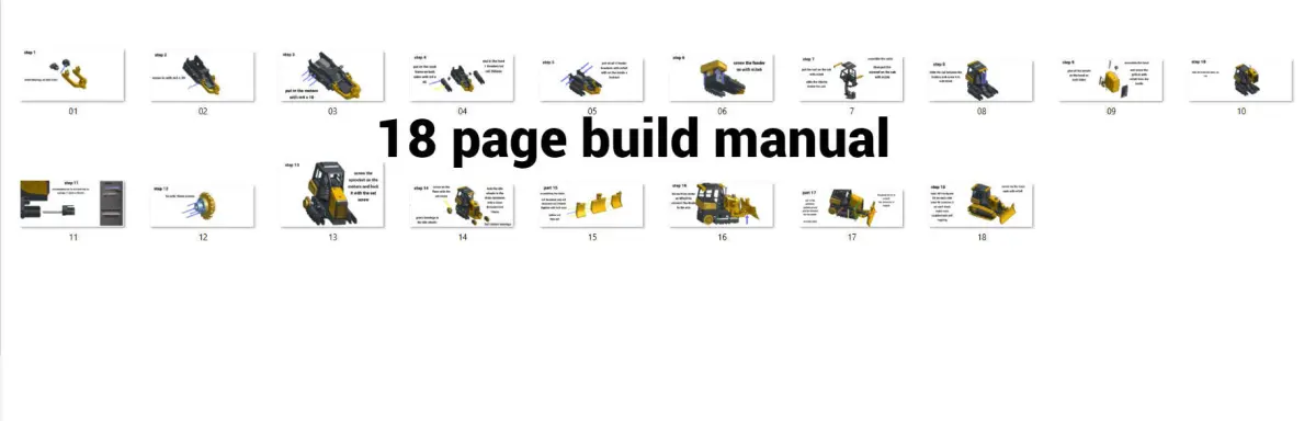 1/14 scale rc bulldozer I have been working on this model for a very very long time. i have made a fully working mini 1/14 scale rc bulldozer. Parts list included, as well as a guide on how to assemble it. this model can be prinded on a 25x25 buildplate. i prinded everything 100% infill