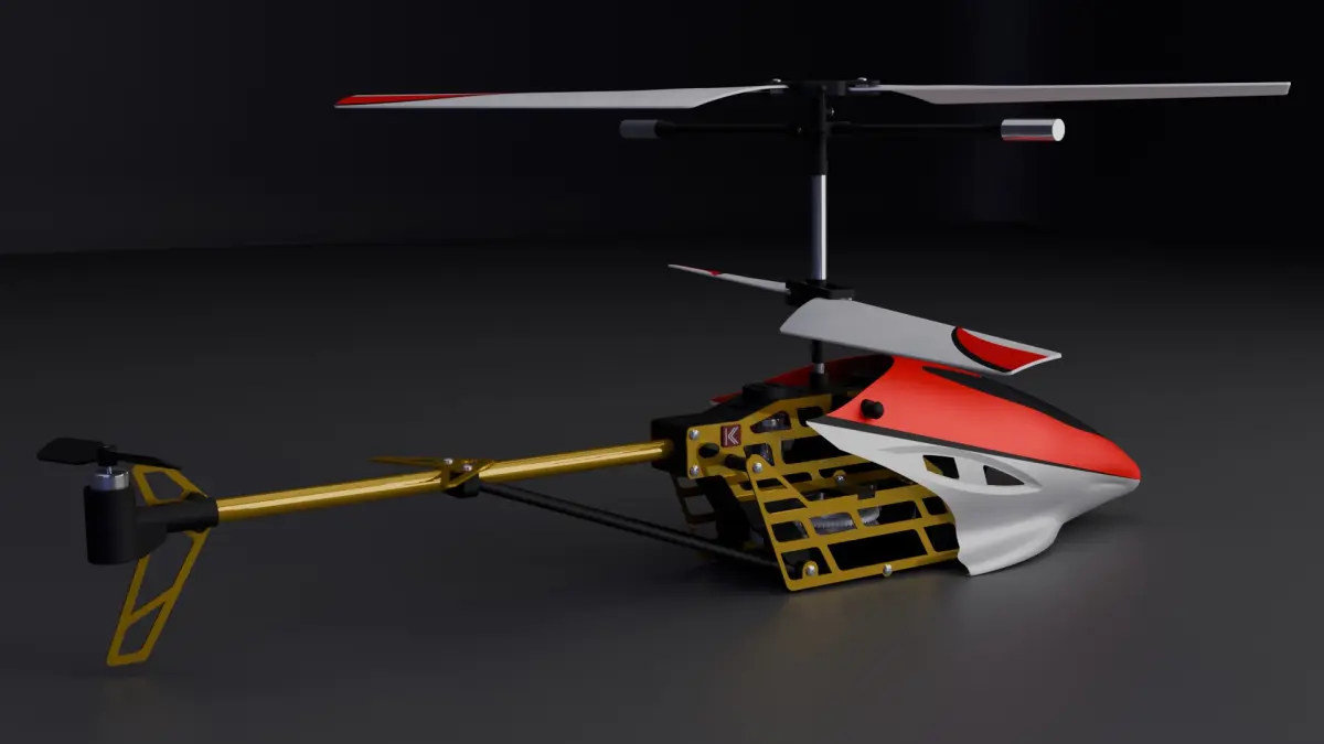 RC Helicopter Model in Blender 4.2This RC Helicopter model is designed using Blender 4.2, featuring an impressive polygon count of 763,068 and 381,359 vertices, ensuring high-quality visuals and smooth performance for your projects.Model Specifications:Dimensions: 143.41mm x 43.975mm x 93.674mmPolygon Count: 763,068Vertex Count: 381,359This model is perfect for use in animations, games, or any visualization project that requires realistic aircraft representation. With intricate detailing and precise scaling, it brings authenticity to your work.