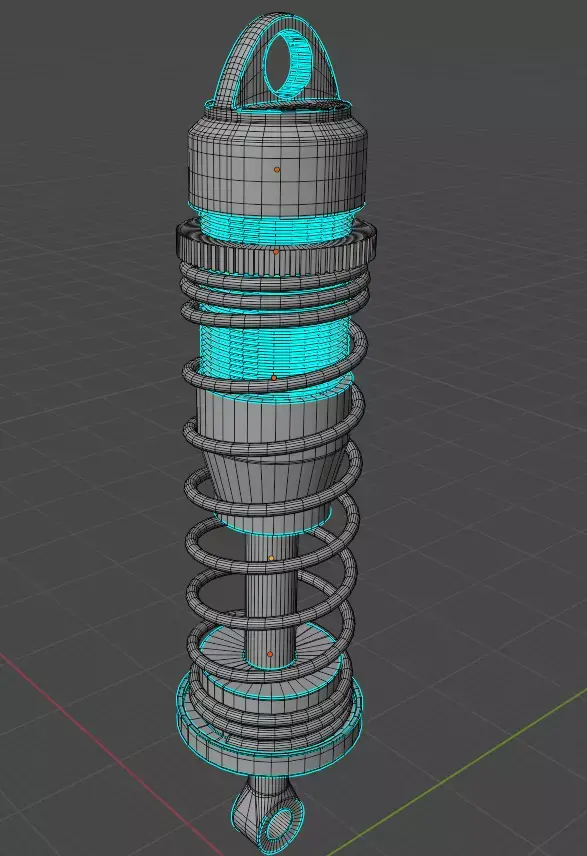 - Detailed mesh with separated parts (damper body, spring, caps, mounting points)