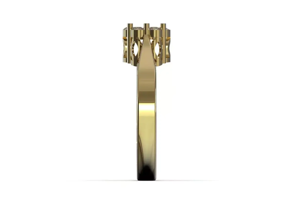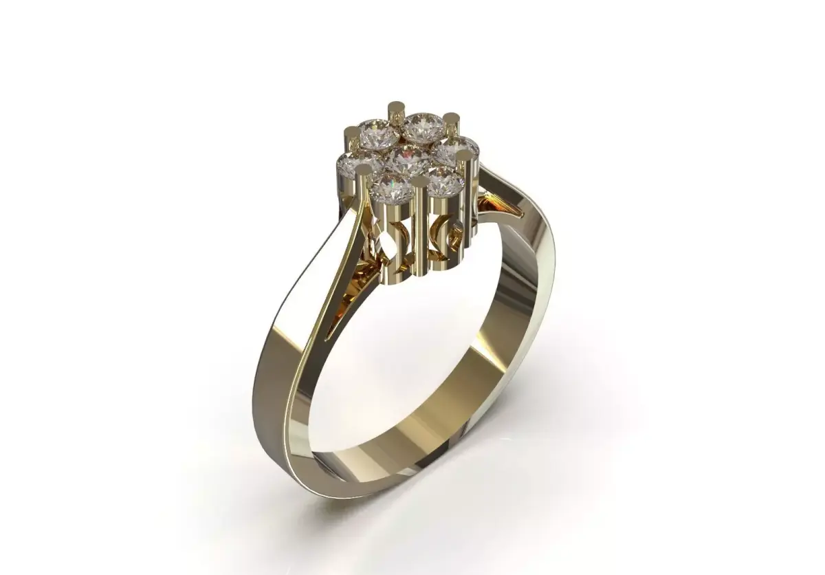 The fr0064 model file is a clever recreation of the popular cluster style, in which 7 round stones (diamonds) are placed together in a way that creates the appearance of a large, sparkling single stone. This model is a great choice for jewelry displays that seek a balance between price and visual appeal.