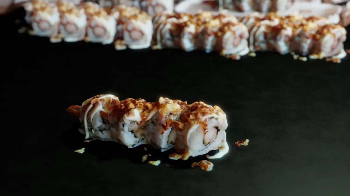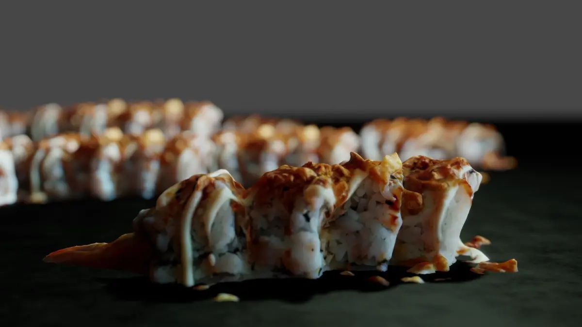 Real 3D scanned Crispy Sushi Roll with shrimp: you will get a 3D scanned Sushi Roll (that is food scanned from a japanese sushi restaurant). 8K pbr textures: diffuse, roughness, normal, AO. Materials included. Blender file included with sets ready to render. Several formats are included. The part of the sushi that touches the plate wasn't scanned because the camera couldn't see it due to the plate being there. This means you can show it on a plate or from different angles. Royalty free license (feel free to adapt it if you need changes).