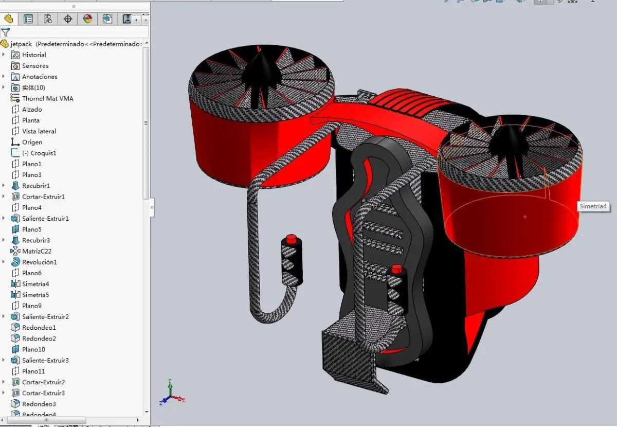 Jet backpack-a back controlled by a rocket thruster to control the size of the jet thrust by means of a controller button; To control the speed and height of the flight; or to make a soft landing by reducing the jet thrust.