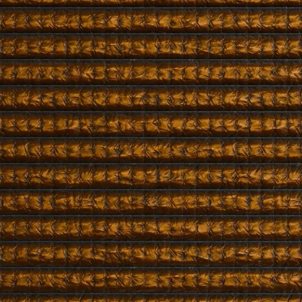 This is a PBR Texture Pack of Real Brown Sci-Fi Hose. This material features a distinct industrial or aerospace aesthetic, showcasing a series of thick, vertically oriented flexible conduits or insulated hosing. The surface is rendered in a deep metallic brown or copper-toned finish, with a realistic quilted or crinkled texture that suggests protective thermal wrapping or heavy-duty industrial reinforcement. Darker, recessed seams provide a sharp structural contrast, making this texture ideal for starship engine rooms, futuristic life-support systems, or complex mechanical underbellies. All essential maps, including BaseColor, Normal, Roughness, Height, and Metallic, are provided to ensure high-fidelity realism and accurate light interaction in your 3D scenes.