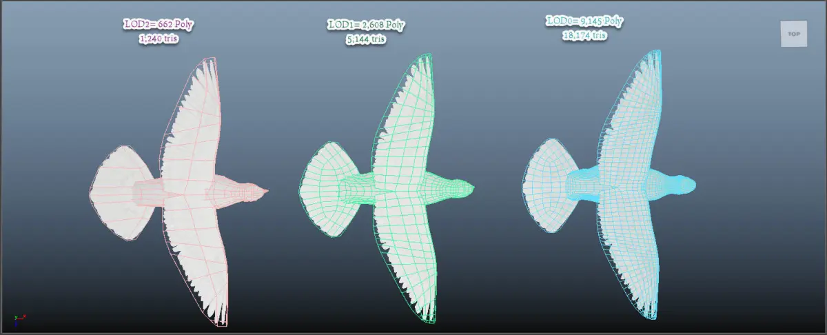 The model's mesh has 3 levels of details, LOD information (count, number of levels):