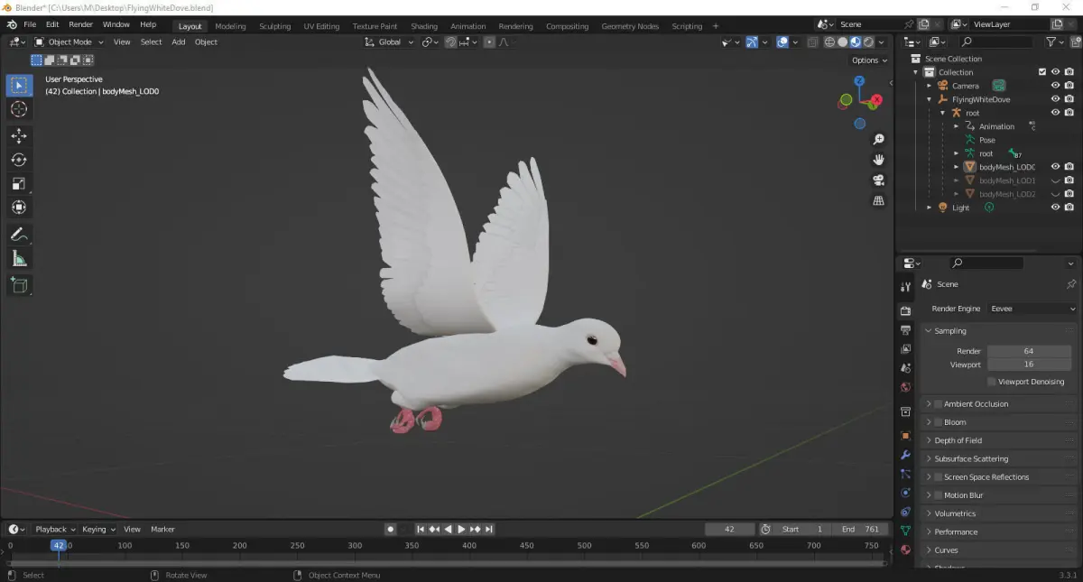 Realistic Animated White Dove Low Poly Model With Realistic Animations,