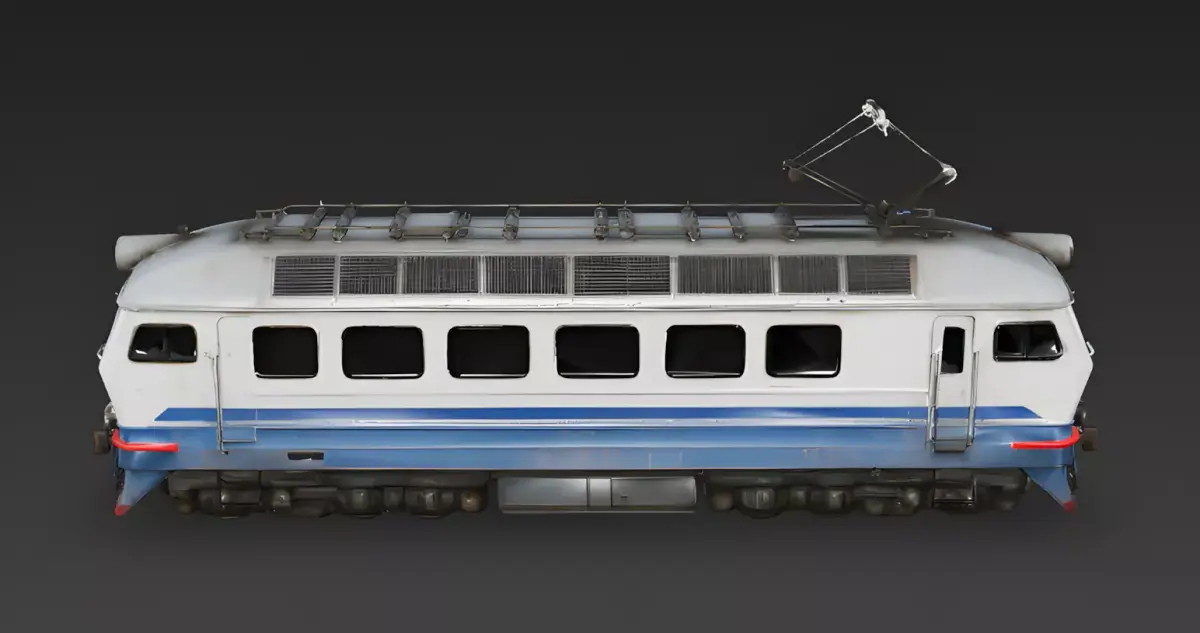 High-Fidelity Pantograph and Roof Ventilation AssemblyA primary feature of this model is the integrated roof-mounted electric pick-up arm and reinforced cooling grilles. Every individual structural bar on the pantograph, the recessed ventilation slats along the upper spine, and the prominent front-mounted circular headlight housing are modeled with significant surface depth, providing a clear visual indicator of late 20th-century aerospace-influenced engineering and adding incredible tactile detail for close-up inspection.
