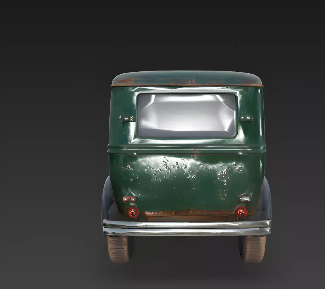 Masterful Silhouette & FormThe model features a striking upright and functional silhouette that commands attention through its utilitarian design. Every curve of the rounded roofline and the heavy-duty side panels has been engineered to reflect authentic pre-war commercial vehicle aesthetics, providing a grounded and realistic presence in any 3D scene.