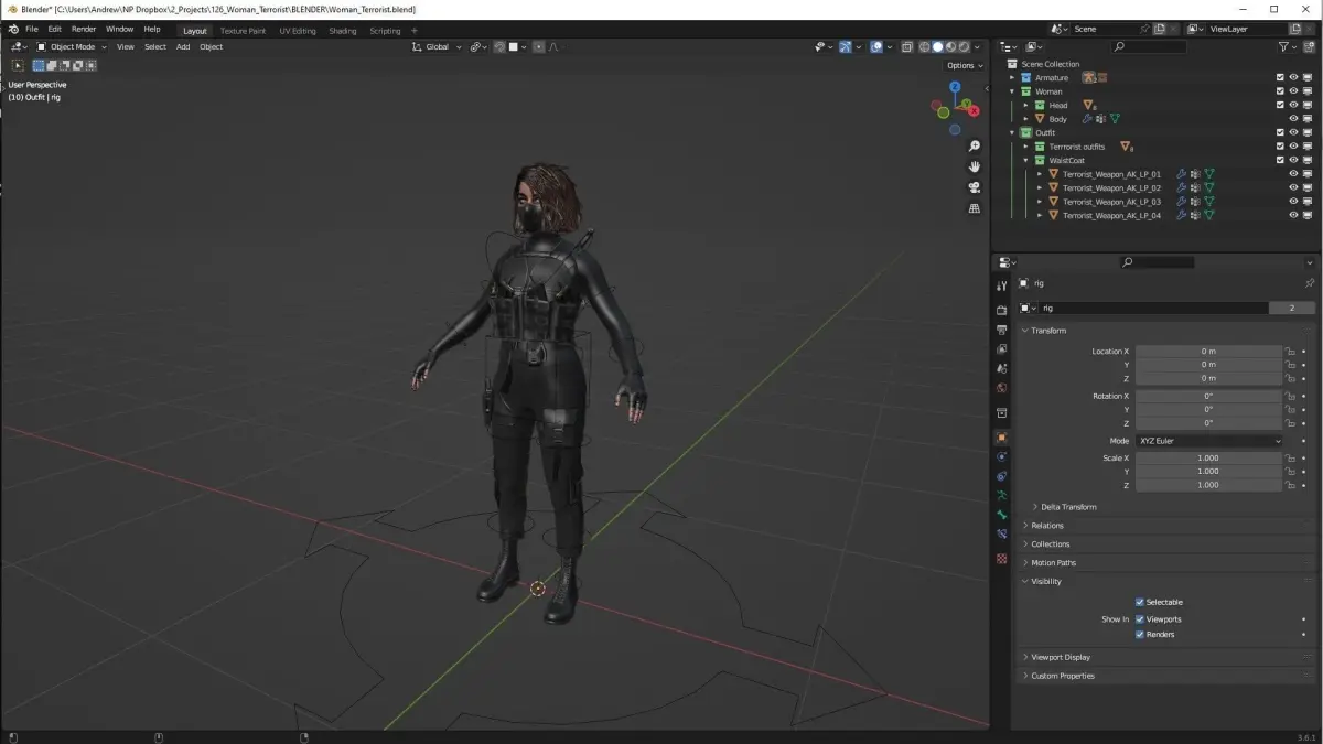 - However, the original Blender file is also available, and it is rigged (based on the rigify addon).