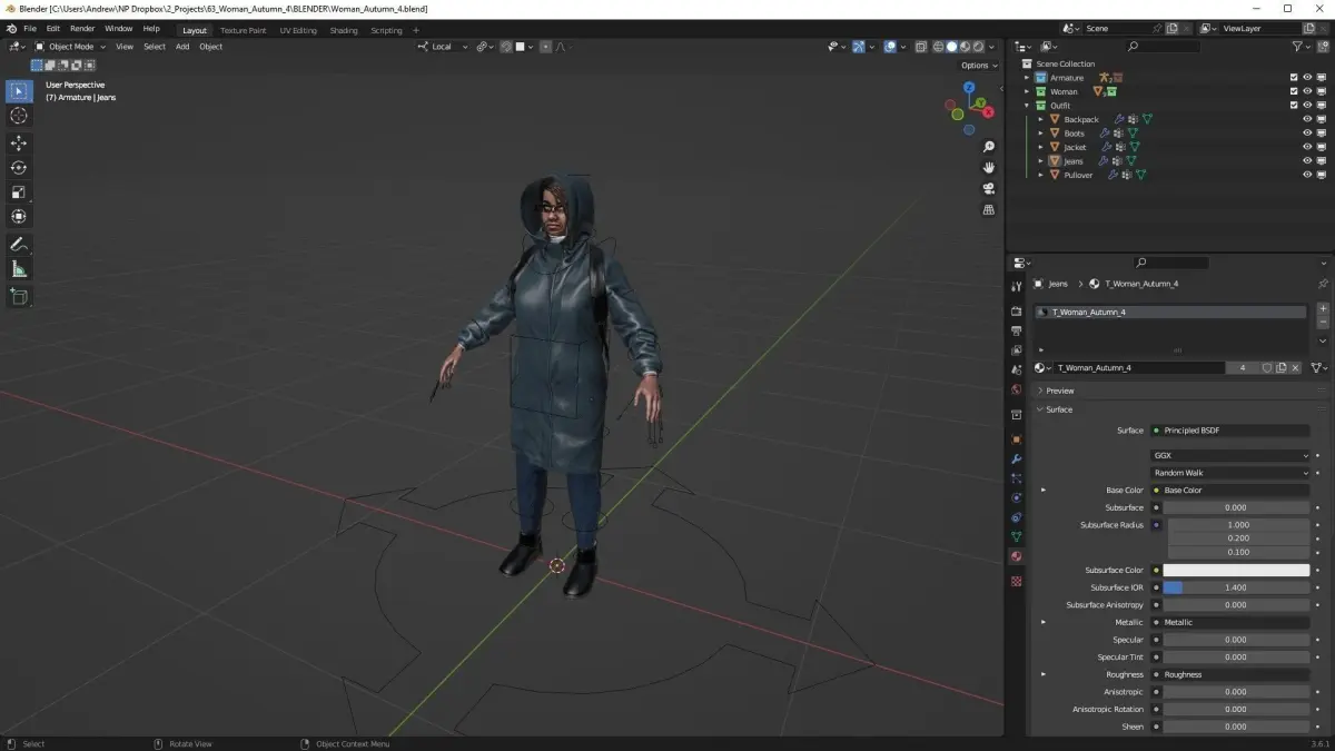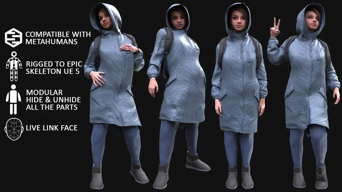 Realistic 3D model of Woman - Autumn Outfit 4 - Modular - Rigged Low-poly 3D model
