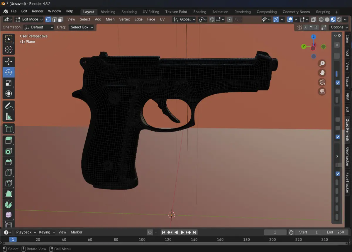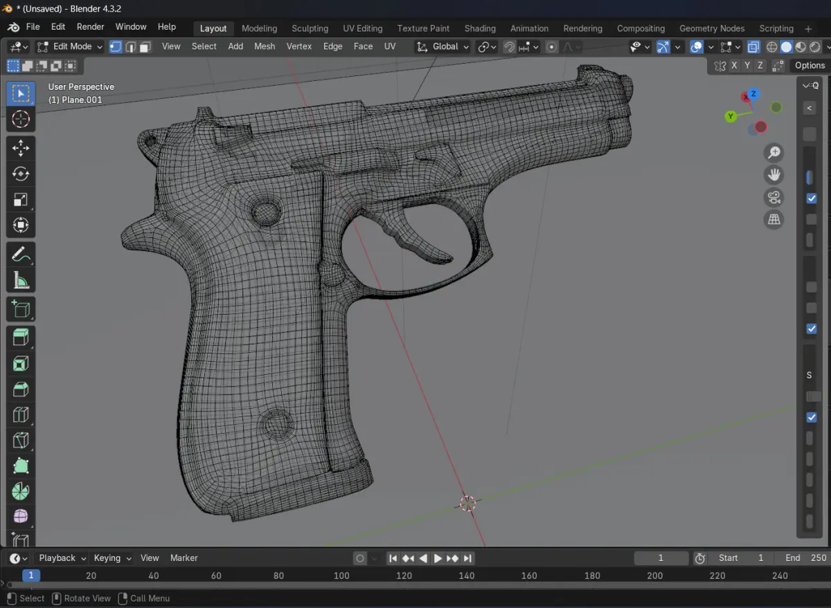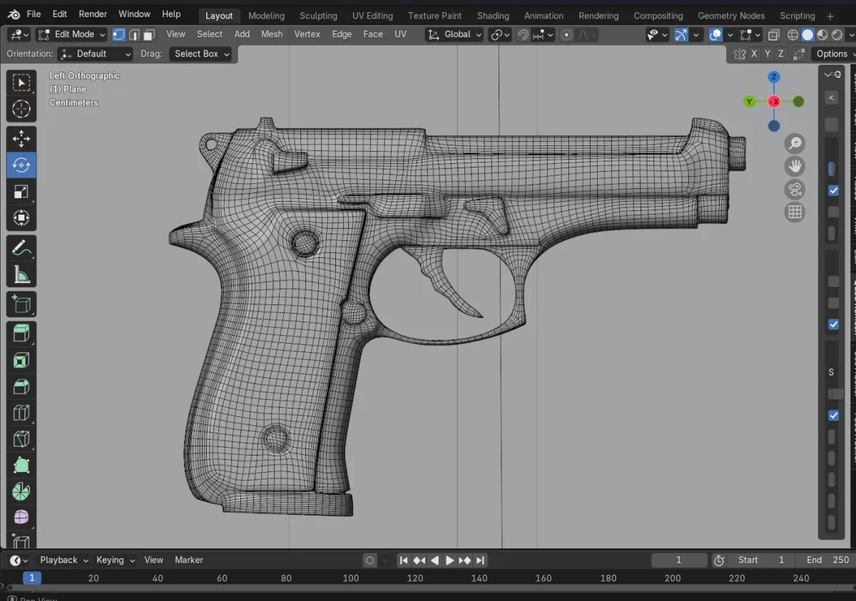 *Realistic 3D Pistol Model with Cinematic Lighting – Blender-Optimized * This high-quality 3D pistol model is designed for realistic rendering and cinematic scenes. Created and rendered in Blender 4.3.2, the scene features optimized lighting and composition, making it perfect for animations, game assets, and concept art. The model includes clean topology, efficient UV mapping, and smooth shading for a polished final look.