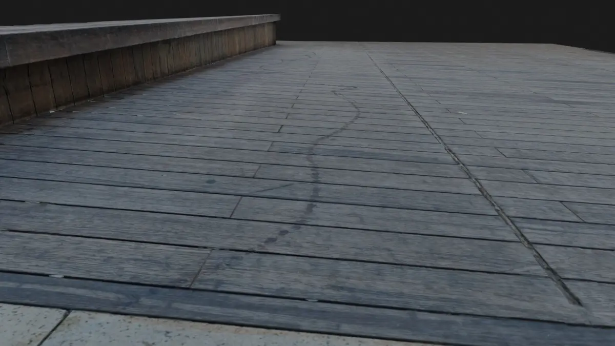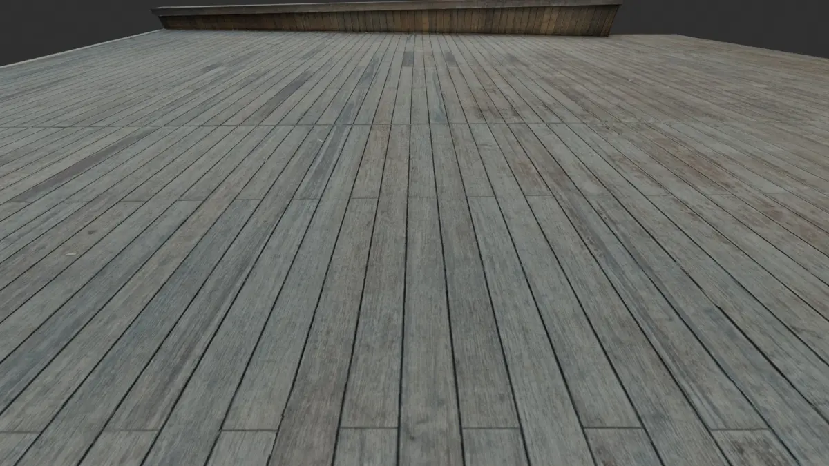 scanned wooden deck, has sigaret butts, sun erosion, uneven colors, and stains.it has 4 tile, 4k textures with normal map. the wooden deck has been retopologized from millions of polygons to only 463 polygons.