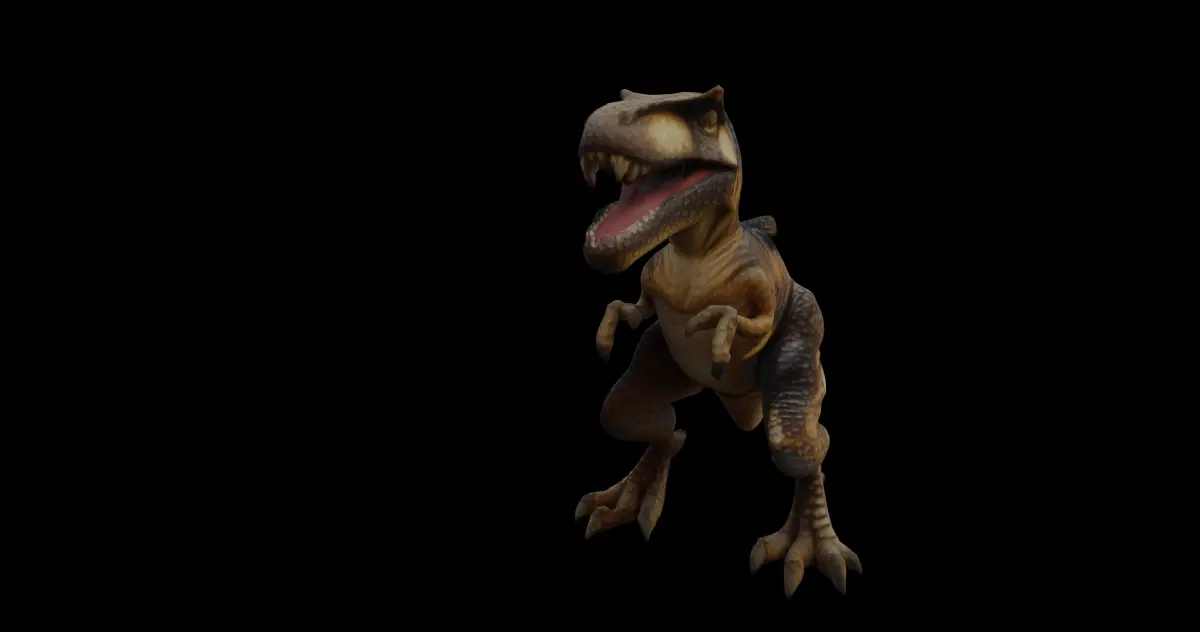 The T-Rex model features a detailed skin texture, with rugged scales and natural color variations, giving it a lifelike appearance. The muscular structure and posture are accurately designed to reflect the strength and agility of this legendary dinosaur. The model is optimized for both high-resolution renders and real-time applications, making it a versatile asset for VFX, gaming, or educational projects.