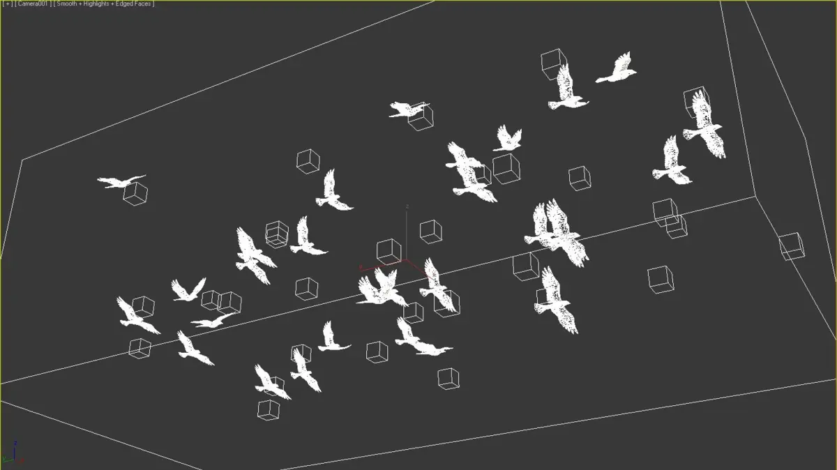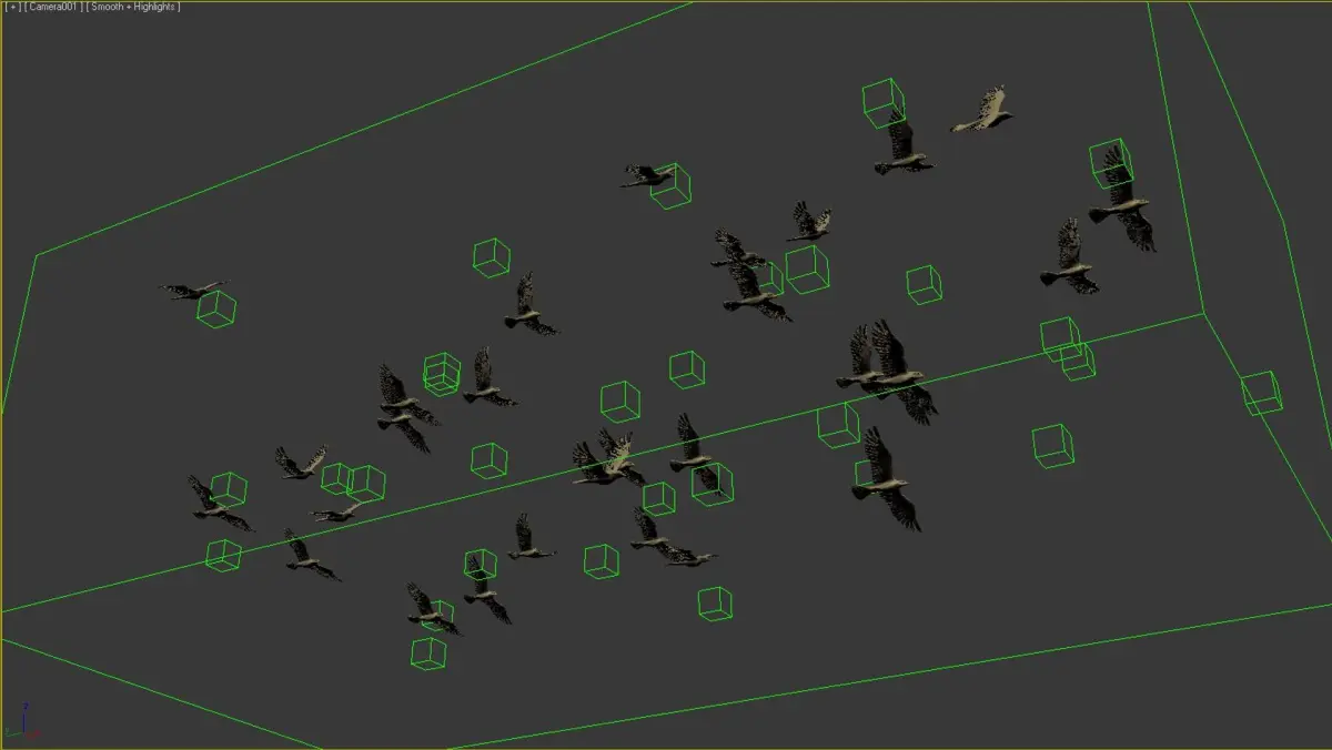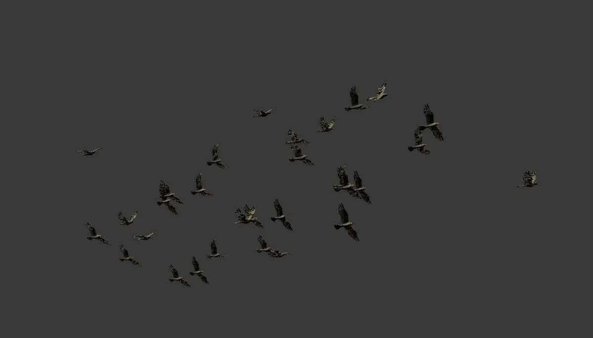 3d model of realistic animated flying bird flock