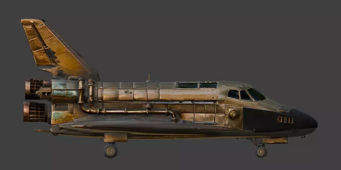 Tagssteampunk space shuttle orbiter ship vessel retro futuristic oxidized copper rusted brass pipe fantasy victorian asset prop industrial aether craft engine exhaust rear 3d model