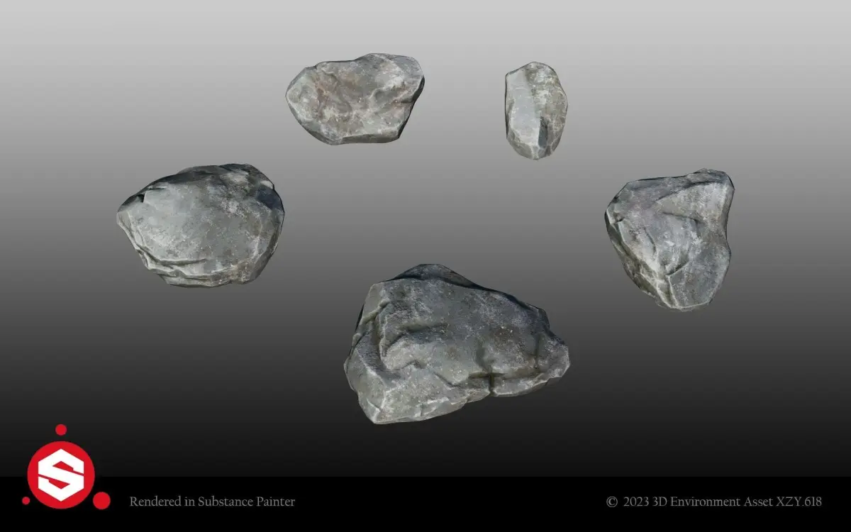 Modeled and textured after real life rock objects in the wild