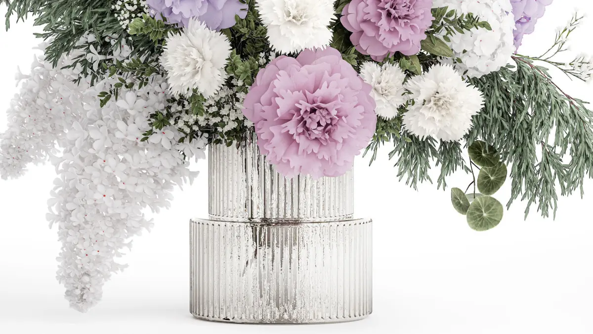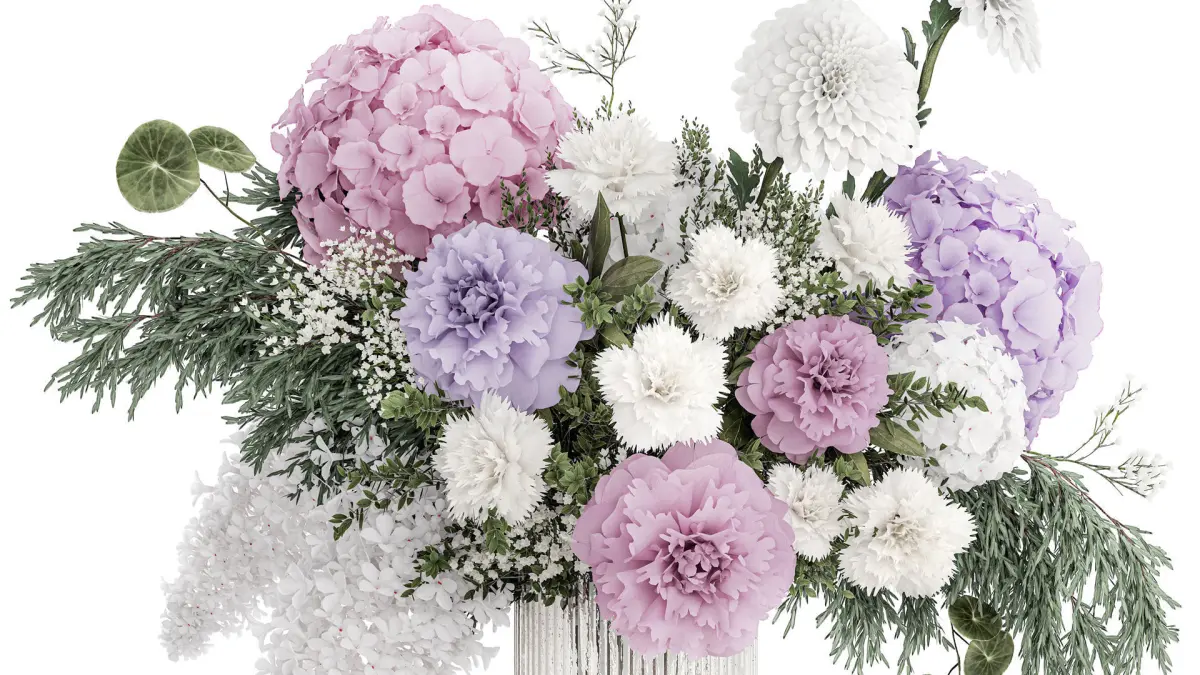 realistic bouquet in a vase hydrangea lilac peony
