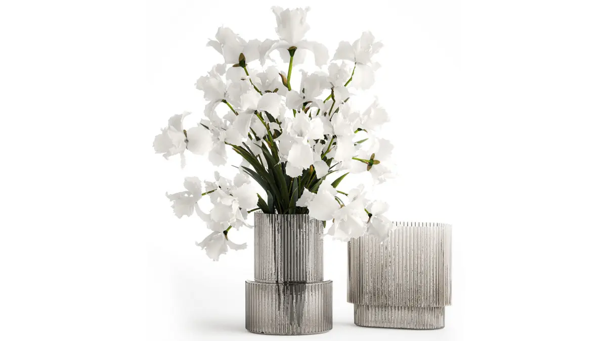 A beautiful formal bouquet of white flowers in a modern glass vase from Iris, Iris. Set 365.Iris - Iris, IrisWhite Irises, vase, decor, flowerBouquet of white flowersSpring bouquetvase - 2.hm, H&M HOME