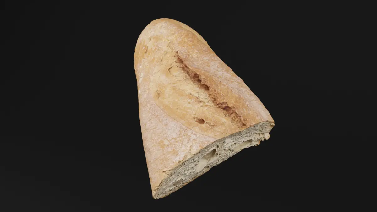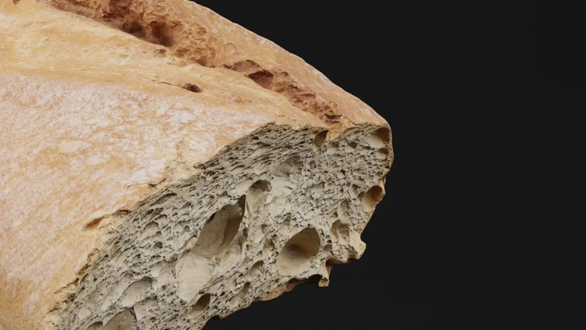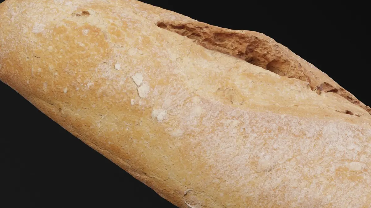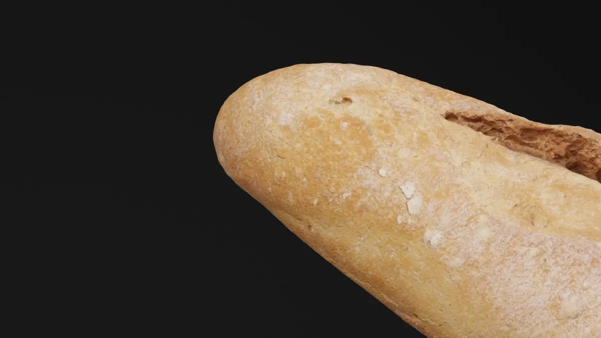 This high-quality 3D model of bread captures the artisanal appeal of a freshly baked loaf, featuring a crusty exterior and soft, airy interior. Perfect for food displays, kitchen scenes, or advertising visuals.