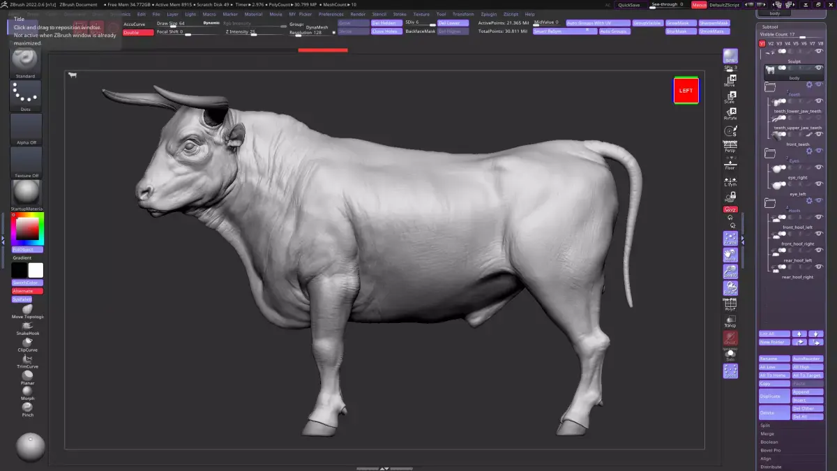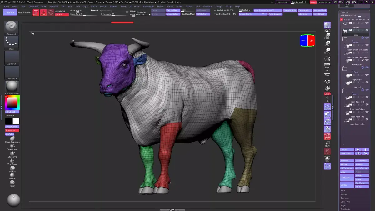 Organized subtools (body, teeth, eyes, hooves, etc.)
