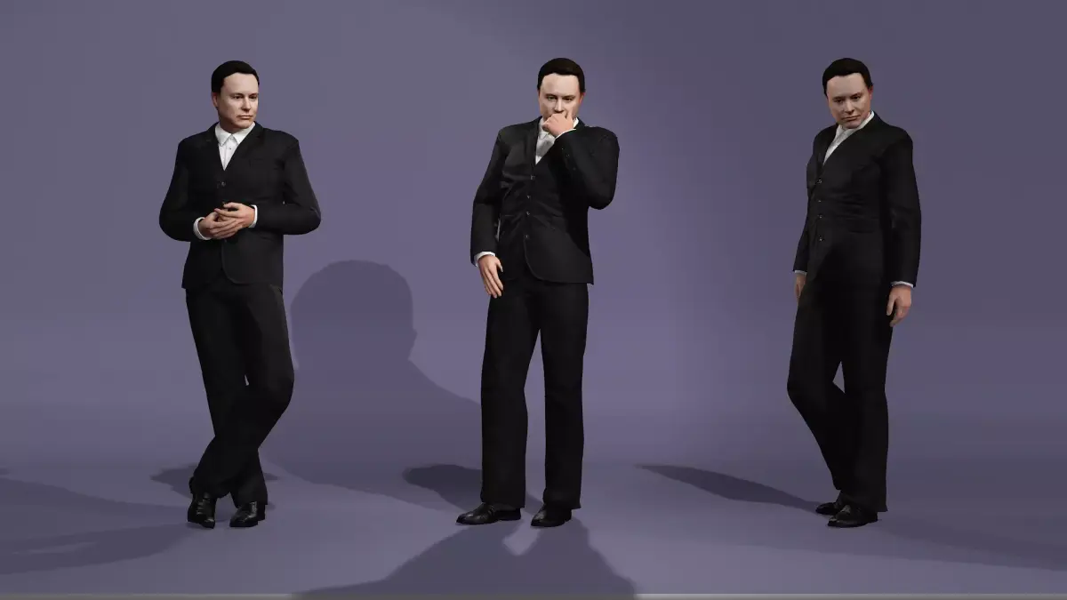 The model portrays confidence, authority, and leadership, dressed in a sleek suit, making it perfect for corporate presentations, business commercials, tech showcases, metaverse executives, game NPCs, and CG shorts.