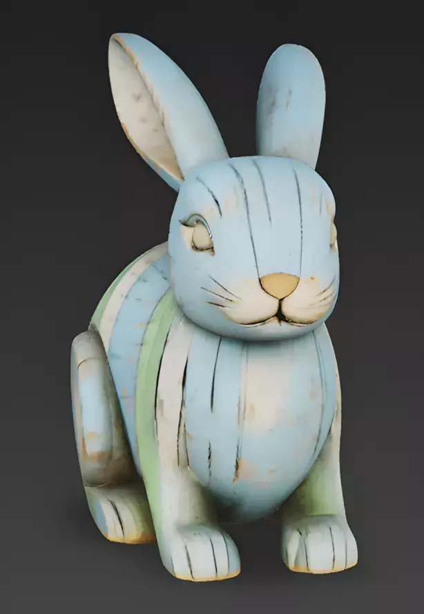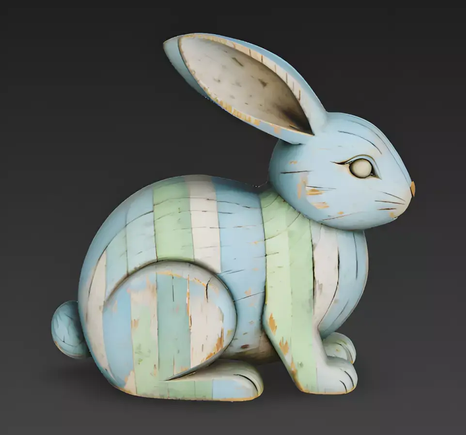 Optimized High-Fidelity GeometryThe entire realistic carved wood Easter rabbit is composed of efficient geometry designed for high-performance real-time rendering. Every element, from the tapering ears and delicate tail to the solid base, is modeled as solid, opaque geometry to maintain a consistent realistic look without the need for complex shaders.