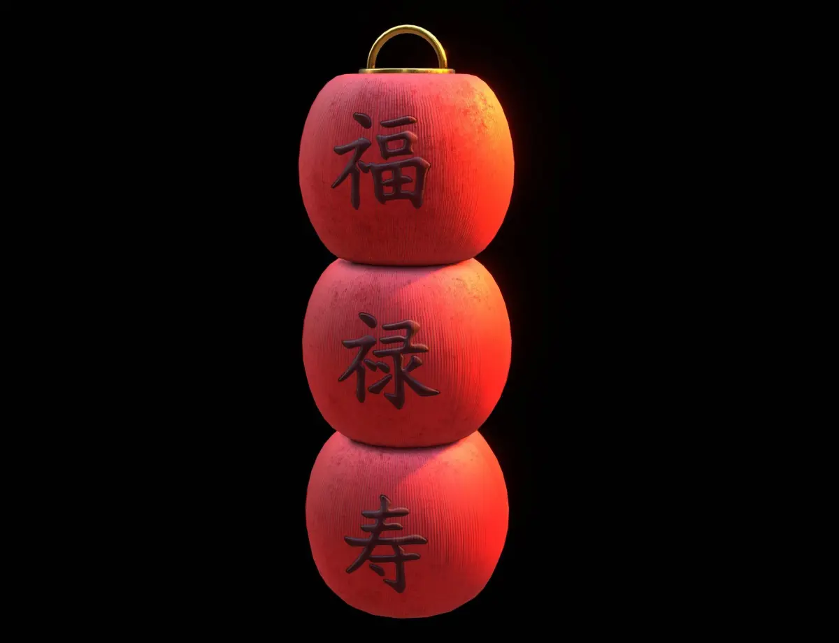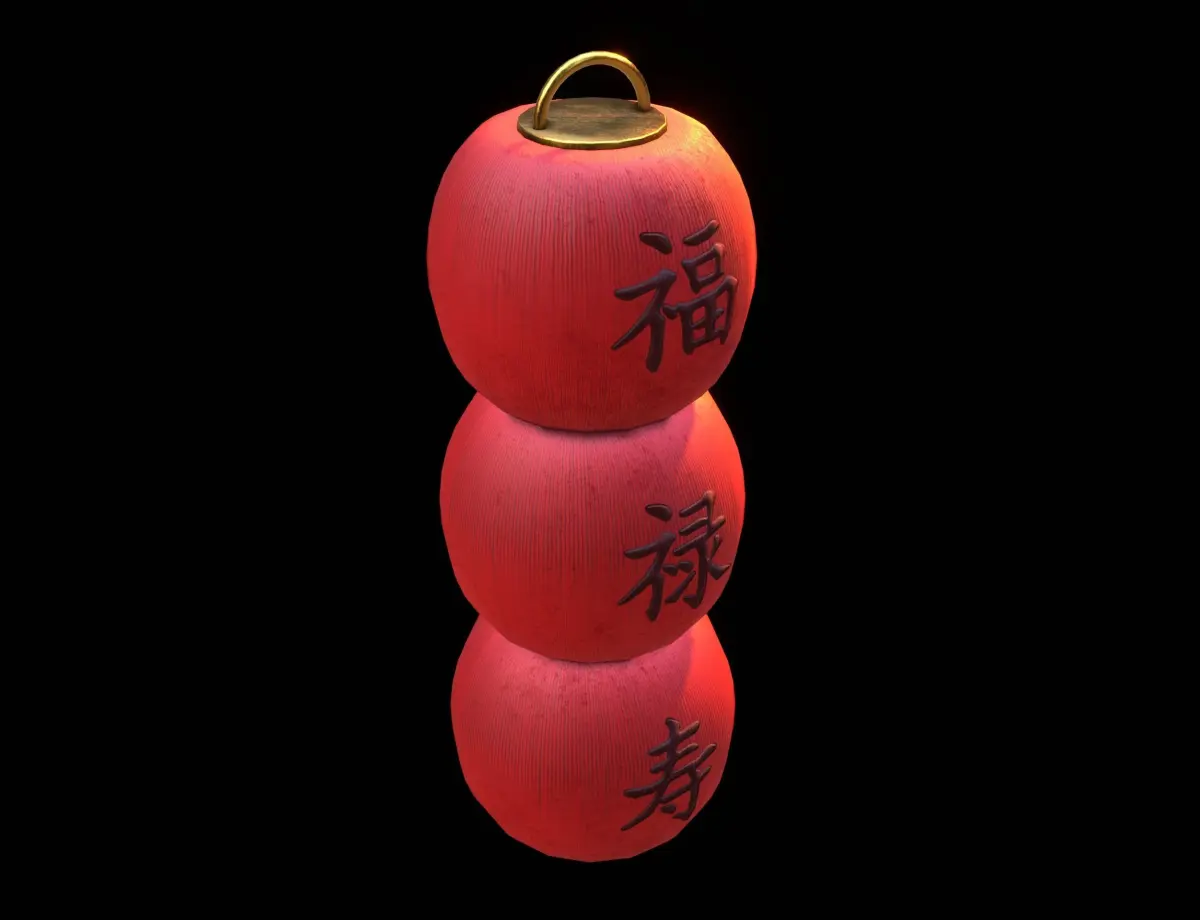 Realistic Chinese Lantern 5 Low-poly 3D model