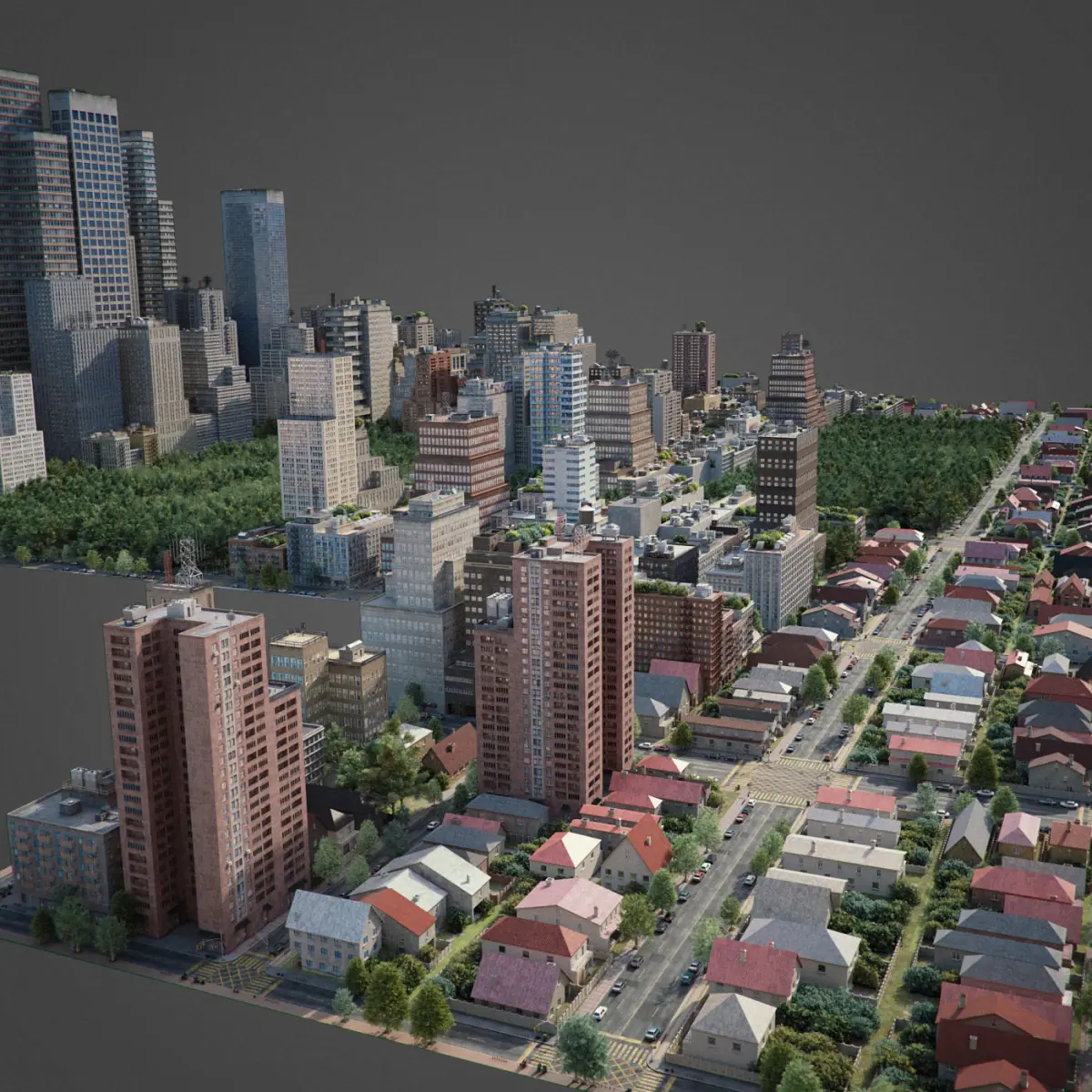 This is full 3d city model modeled based on americans cities. This is real world scale model. Whole scene setuped and fully ready to render. All materials setuped in Vray. Light setuped by HDRI and Dome light.