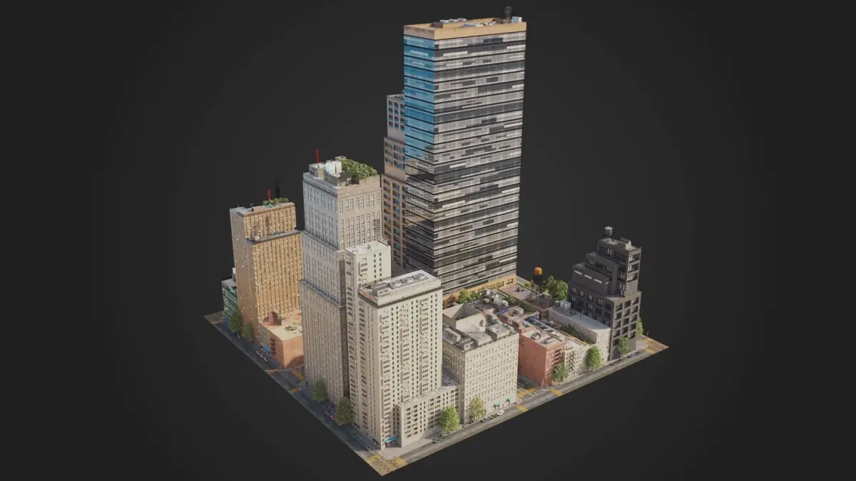 This is full 3d city model modeled based on americans cities. This is real world scale model. Whole scene setuped and fully ready to render. All materials setuped in Vray. Light setuped by HDRI and Dome light.