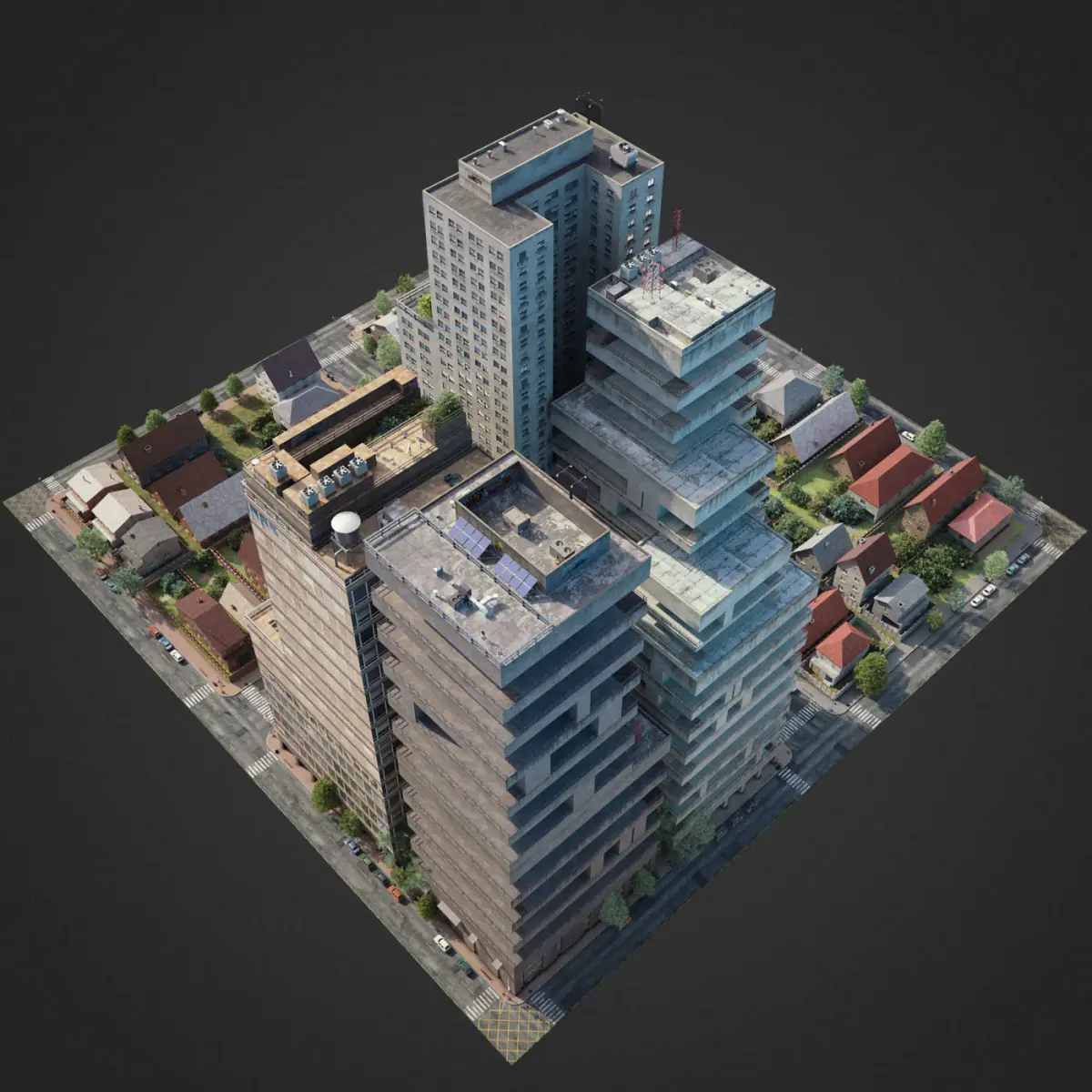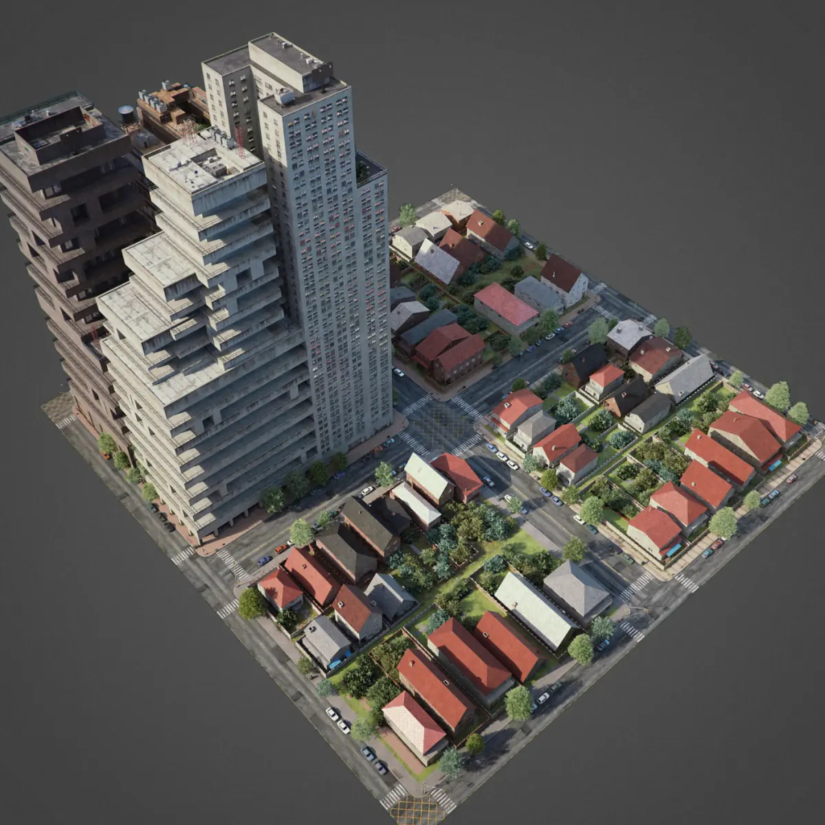 This is full 3d city model modeled based on americans cities. This is real world scale model. Whole scene setuped and fully ready to render. All materials setuped in Vray. Light setuped by HDRI and Dome light.