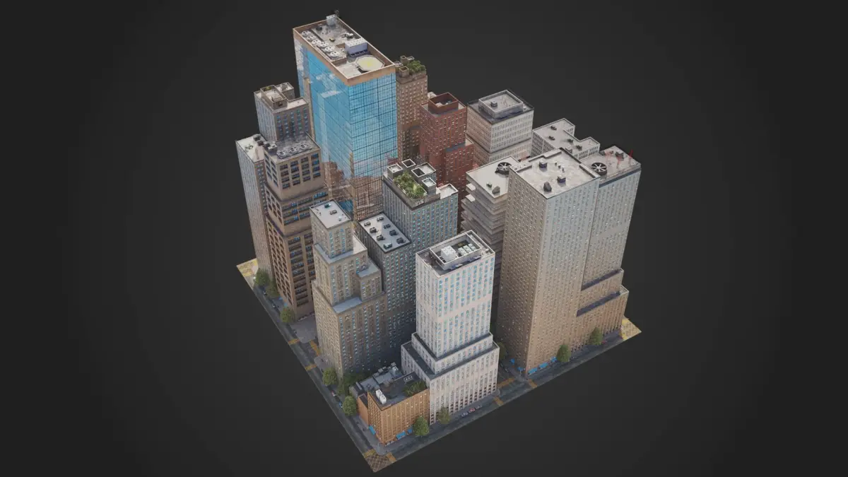 This is full 3d city model modeled based on americans cities. This is real world scale model. Whole scene setuped and fully ready to render. All materials setuped in Vray. Light setuped by HDRI and Dome light.