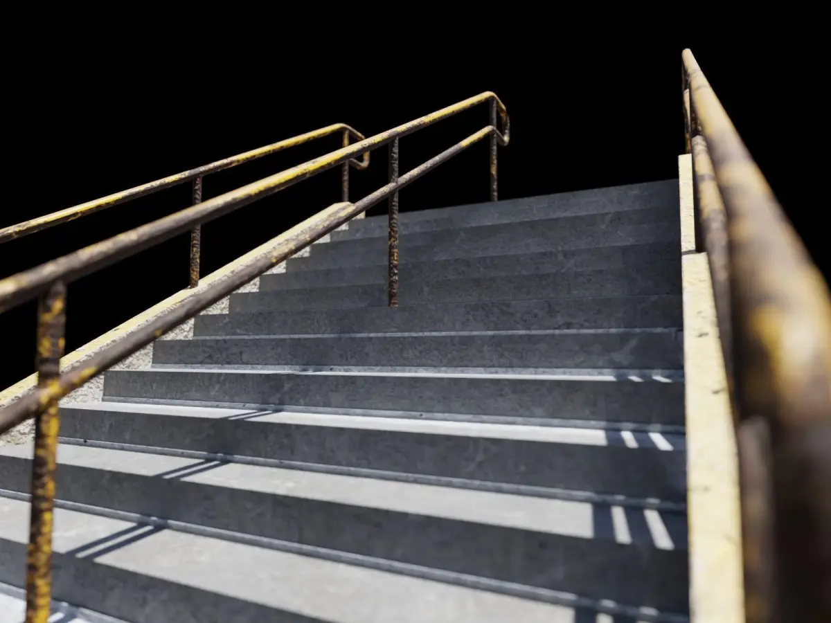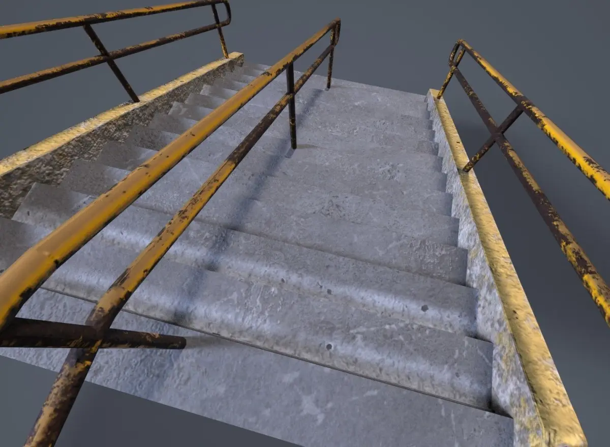 Realistic Concrete Exterior Staircase with Handrail Model made with Blender and Substance painter