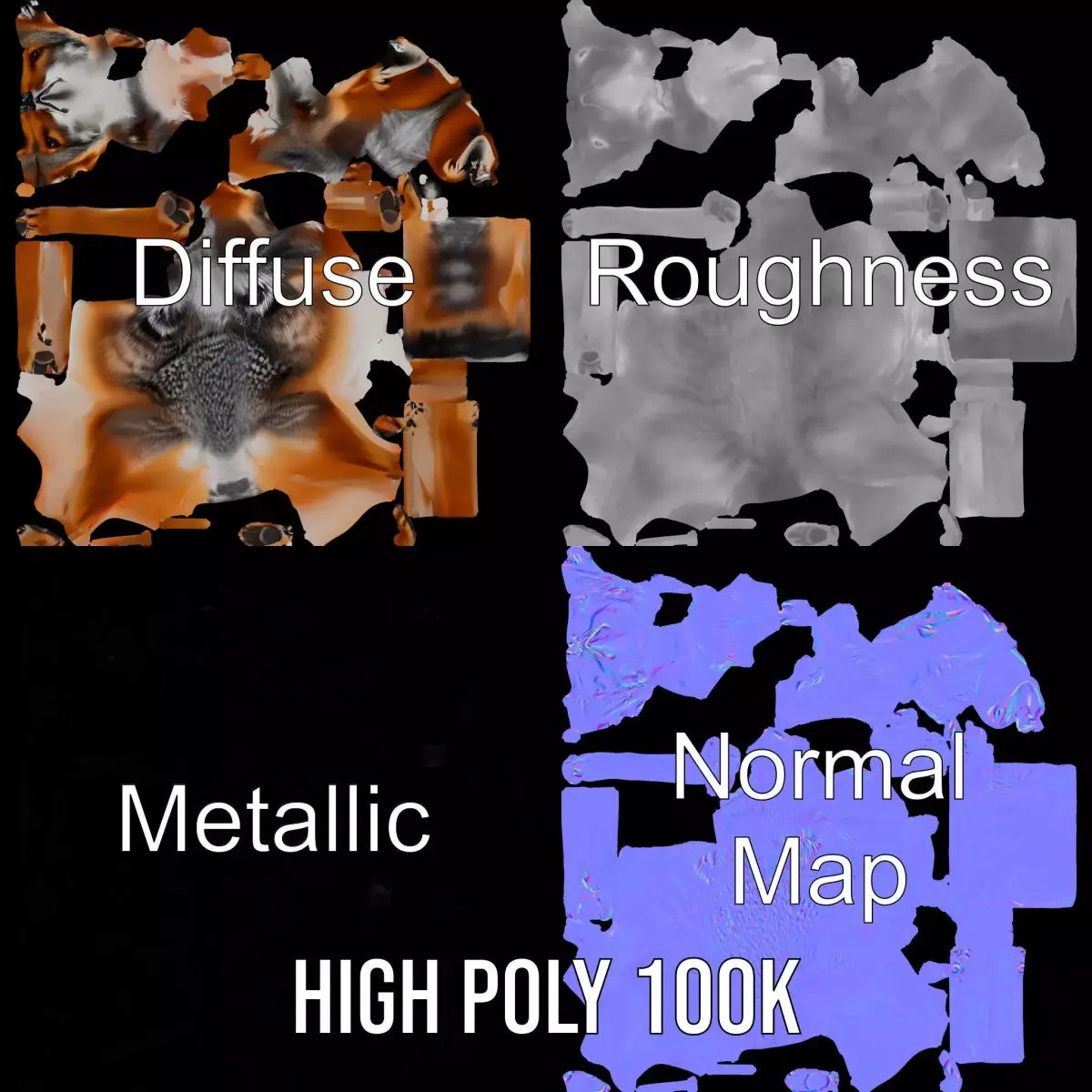 Explore the wilderness with this highly detailed Realistic Coyote Fur model pack. Perfect for enhancing natural scenes in animations, games, and educational simulations. Each model has 3 levels of detail: low-poly (1000 triangles for mobile), middle-poly (10,000 triangles for environment), and high-poly (100,000 triangles), which allows for the use of this model in production rendering (such as 3ds Max, Maya, Cinema4D, Blender, Vray/Corona/Cycles and all others), game engines (Unity and Unreal compatible), and interactive presentations. The model's textures are PBR, Diffuse, NormalMap, and reflection/roughness/metallic, suitable for any modern rendering engine. All models accurately unwrapped with no overlapping UV. All textures are 4096x4096 in size. Please like and leave a comment if you enjoyed this model!