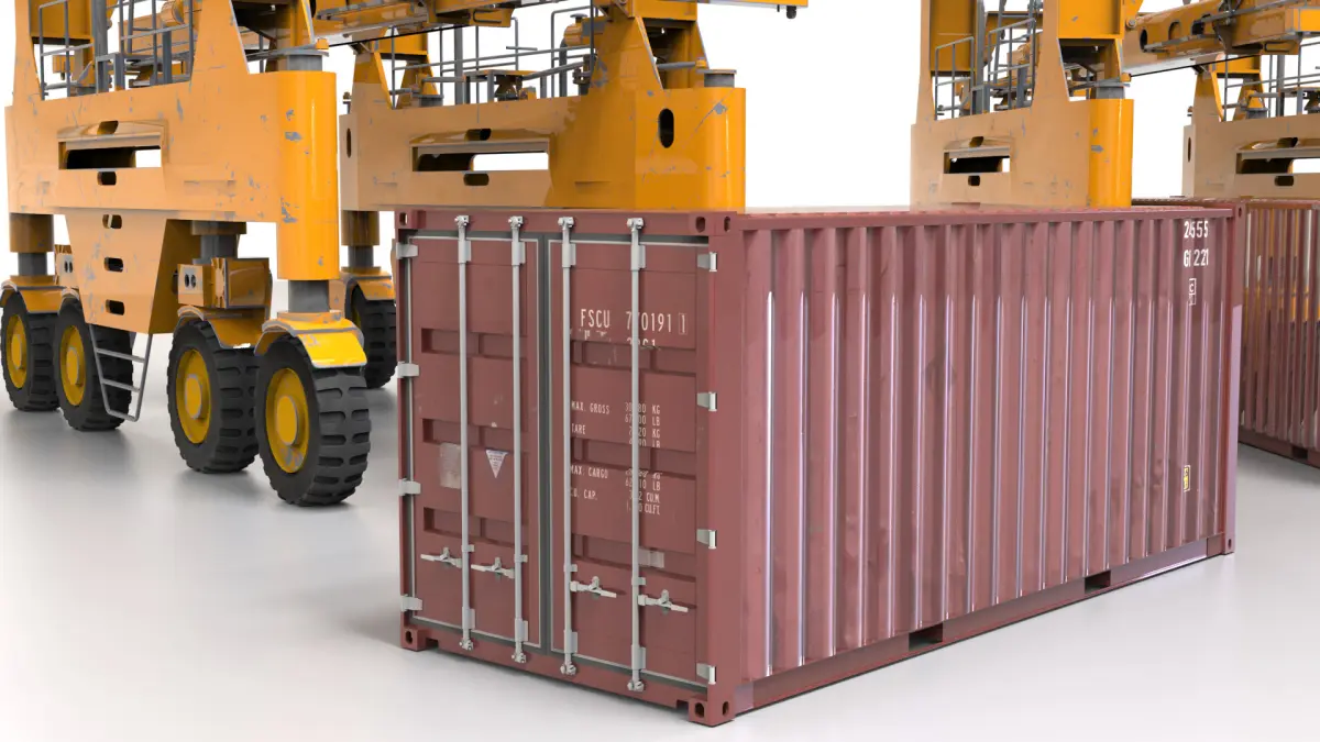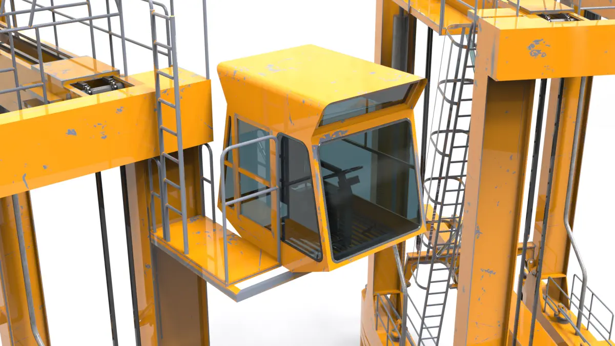 The crane includes accurate structural details, cables, hooks, and ladders, while the container is modeled with realistic dimensions, surface detailing, and door mechanisms. Clean topology and organized materials ensure smooth performance and easy customization.