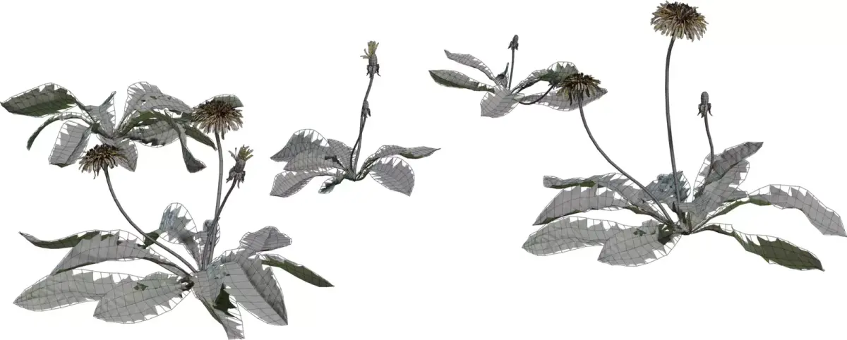 These assets are low poly and lightweight, making them suitable for massive environments, AR/VR projects, and even mobile applications. Mesh groups are organized and scaled to real-world dimensions. Provided in standard formats (FBX, OBJ, BLEND), the models are ready for integration or quick material edits. Whether adding atmosphere to ground surfaces, creating natural backgrounds, or focusing on close-up hero shots, this dandelion weed pack is an essential resource for any nature or urban project.