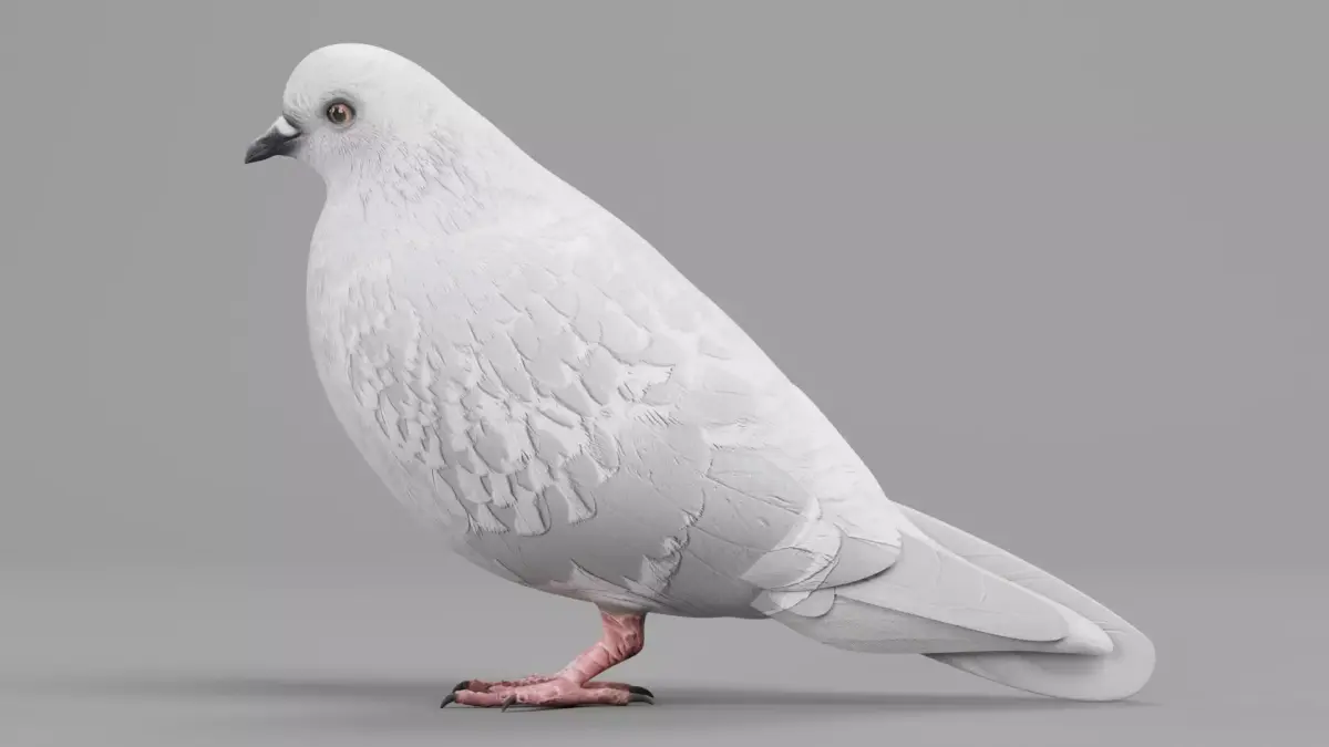 - Realistic dove (white pigeon) model with natural proportions, pose, and detailed feather surface