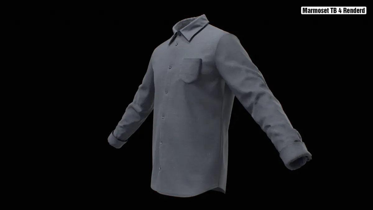 Seamlessly integrate the dress shirt into your workflow with compatibility across multiple formats, including 3Ds Max, Blender, Marmoset Toolbag 4, Keyshot 11, FBX, OBJ, and GLTF.