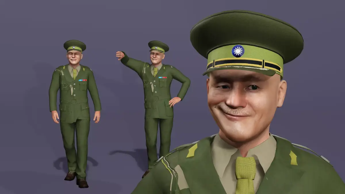 Realistic human 3D Model, the character is 90% similar to the President Chiang Kai-shek of the Republic of China.