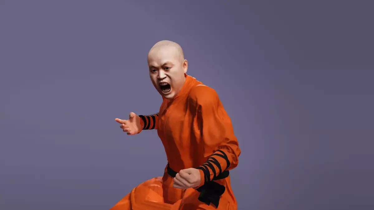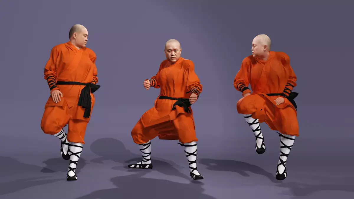 The model conveys a solemn spiritual aura combined with martial presence, with detailed robes, lifelike facial features, and realistic body proportions. Perfect for film and CG production, cultural showcases, martial arts-themed games, VR exhibitions, educational projects, and metaverse experiences.