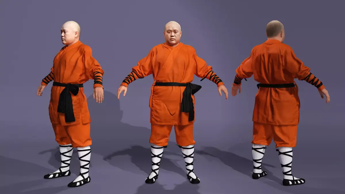 This is a high-quality, realistic 3D model of an Eastern monk character, inspired by Shaolin master archetypes.
