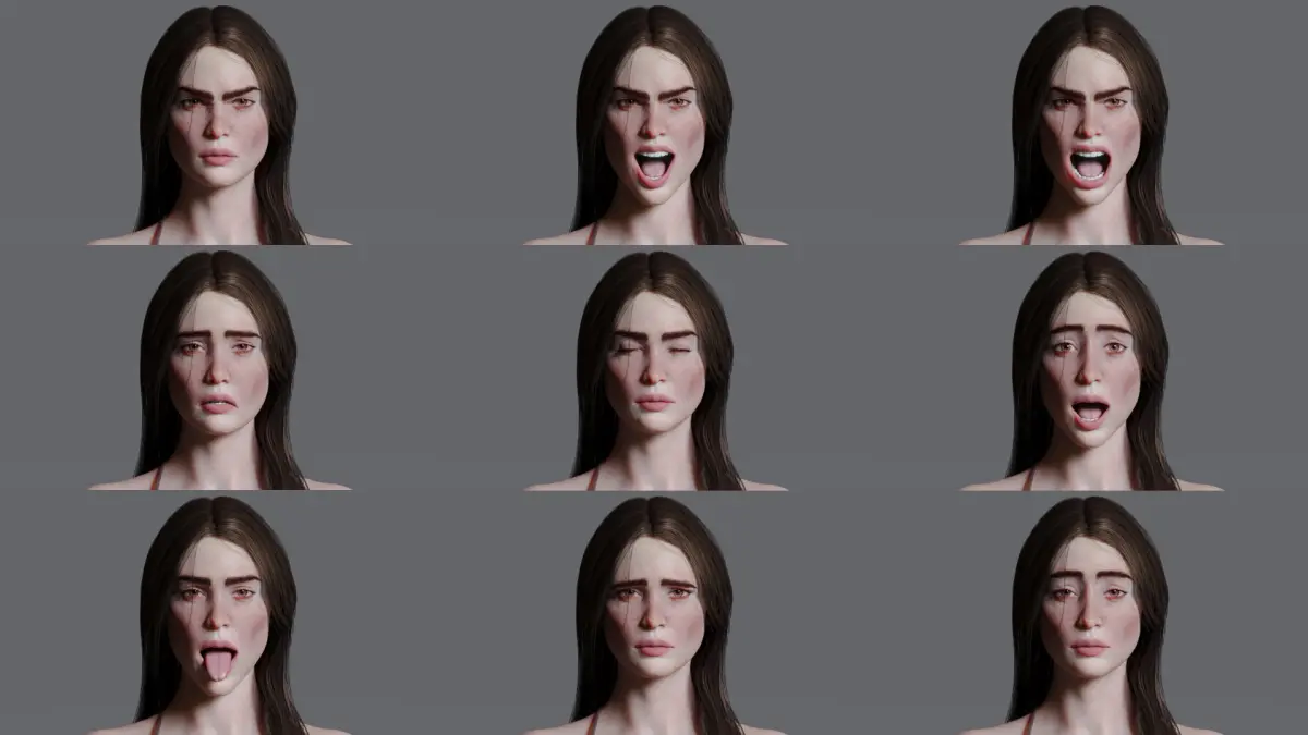 - Realistic mouth modeled in one single piece (gums, tongue, throat)