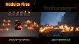 - Large fires are built from modular fire elements that can be mixed, duplicated, and layered to create massive wildfires, burning fields, ruins, or destruction scenes. Build organic, non repetitive fire layouts instead of relying on a single effect.