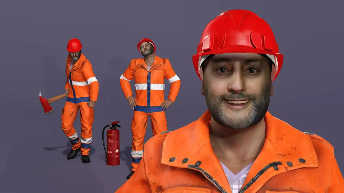 Includes a set of fire axe swinging, extinguishing, and idle alert animations, making it ready for immediate use in rescue simulations, educational videos, safety games, and cinematic productions.
