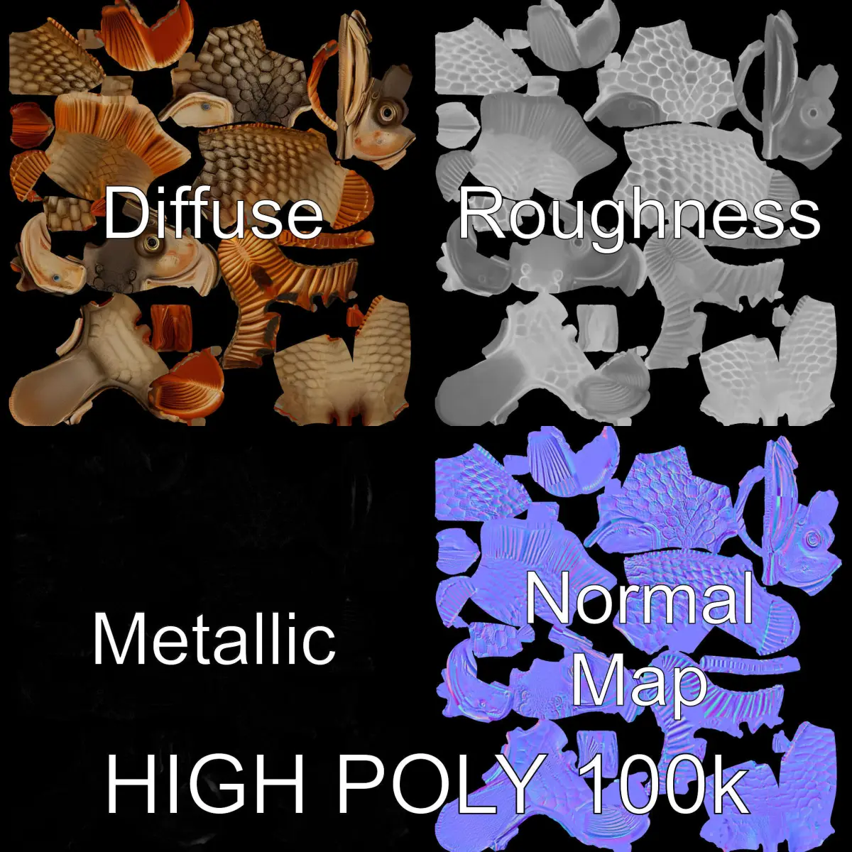 This realistic fish model pack offers three levels of detail, providing flexibility for various uses. With low-poly for mobile, mid-poly for environments, and high-poly for production rendering, this versatile model can enhance underwater scenes, educational applications, and animated films. The textures are PBR, Diffuse, NormalMap, and reflection/roughness/metallic, suitable for modern rendering engines and game engines, including Unity and Unreal. All models are accurately unwrapped with no overlapping UV, and textures are 4096*4096 in size. The first image is the reference used for creating the 3D model. It is important to carefully evaluate the quality of the model by examining the preview images that display the topology and polygonal mesh. These previews (WIRE and WEB 3D Preview) clearly demonstrate how accurately the model matches the original reference and how well the geometry has been executed. Please like and leave a comment if you enjoyed this model.