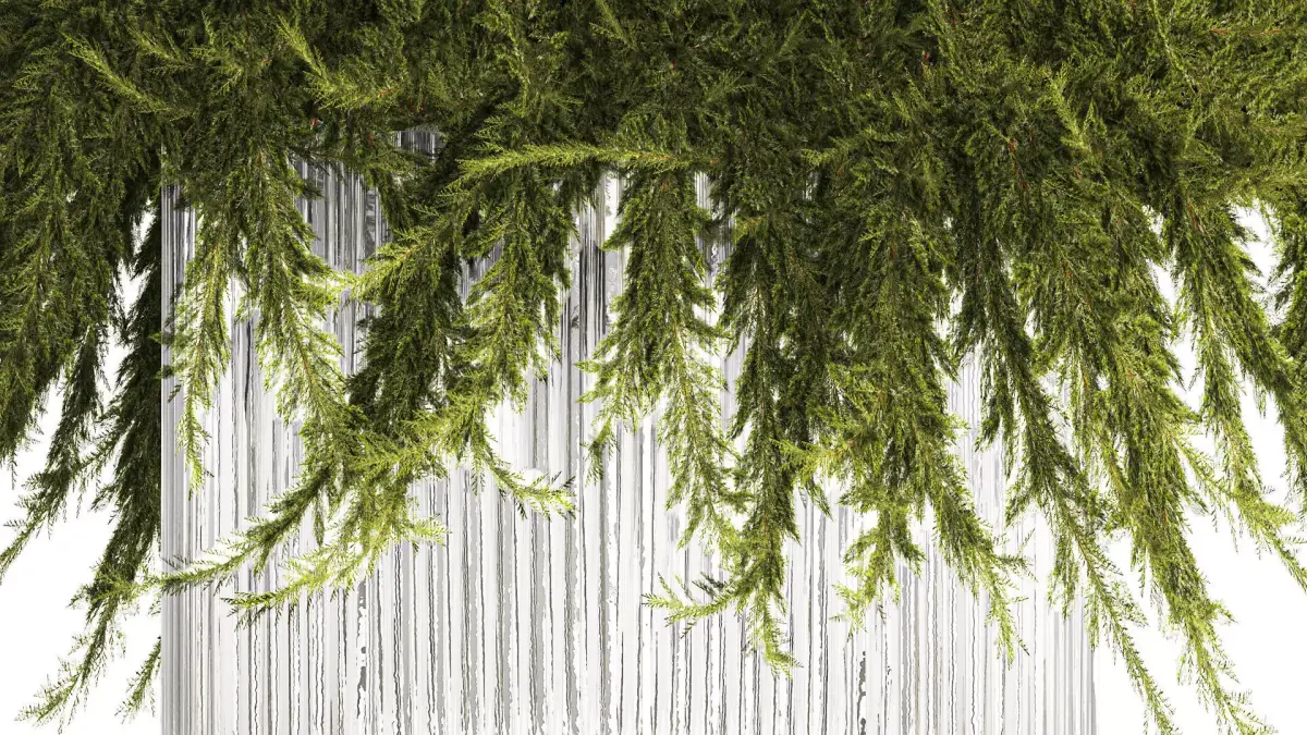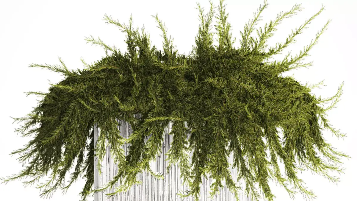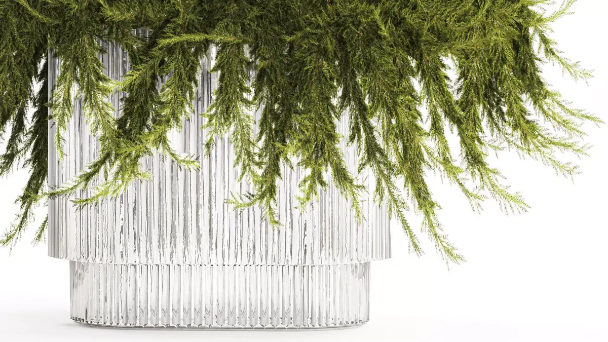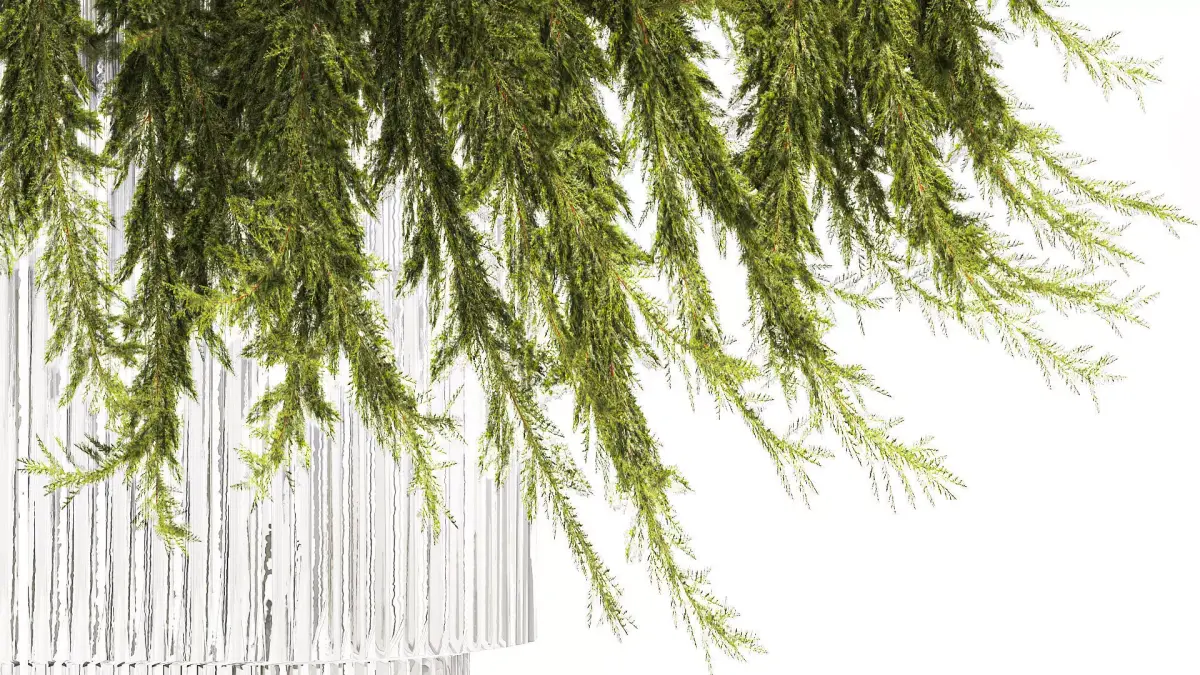 A realistic flower bouquet of green juniper branches with leaves in a glass vase. Set 655.Decorative bouquet of green flowers in a glass vase for decor and interiors.Green Flower Bouquetflowers, vase, green flowersBouquet of garden flowers and plantsJuniper - Juniperus, JuniperRealistic in a modern glass vase
