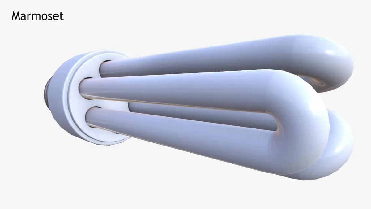 PBR realistic 3D model of a fluorescent lightbulb, suitable for renders, games and architectural visualization.