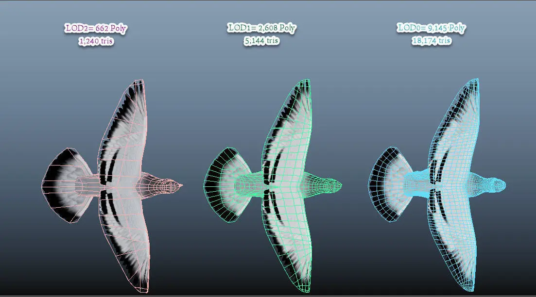 The model's mesh has 3 levels of details, LOD information (count, number of levels):